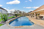 Rare find in Friendswood Lakes – spacious one-story on a corner lot with a pool & lake views. Fresh landscaping & recently painted stucco welcome you inside to 10’ ceilings & crown molding, leading to an elegant dining with custom dry bar & a sunlit living & breakfast room with a wall of windows. The open kitchen features updated custom cabinetry, granite countertops, stainless appliances, a gas cooktop, built-in oven, & 2 breakfast bars. The inviting family room with gas-log fireplace leads to the home office with shelving & cabinetry. Two secondary bedrooms with vaulted ceilings & expansive walk-in closets share a renovated bath. On the opposite side of the home, the secluded primary bedroom offers backyard access and an en-suite spa-like bath with a walk-in shower, jetted tub, separate his & hers sinks, & oversized closet. The bonus flex room off the garage has its own separate entrance. Outdoors, enjoy the landscaped backyard oasis with pool, spa, covered patio, & firepit.