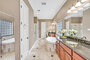 Magnificent 5 bedroom estate with a pool & no rear neighbors in gated Hunters Creek! A grand stucco & brick elevation with a double door entry sets the tone for this beauty with soaring ceilings, a sweeping staircase, & travertine tile floors transitioning into wood floors that flow throughout the study, elegant dining room, & formal living room with a double sided gas fireplace extending into a cozy family room with built-in speakers & pool views. A breakfast bar makes way to the island kitchen with granite counters, stained wood cabinetry, & stainless appliances including a gas cooktop & dual ovens. The secluded master suite boasts his & hers vanities & closets, a jetted tub, & an oversized shower with bench seat. Upstairs, find a game room & 4 bedrooms with 2 Jack & Jill style baths & large walk-in closets. Entertain around the backyard pool with views of the peaceful greenspace behind the home. Also note the new roof & A/C, 4-car tandem garage with EV charger, & sprinkler system!