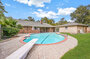 Beautiful & updated single-story 4-bedroom home with a pool, tucked amongst towering moss-draped trees on a park-like winding creekside road in Wedgewood Village! Located on a sprawling corner lot, this inviting abode boasts stylish luxury vinyl plank floors, neutral paint, energy-efficient double-paned windows, and modern lighting extending throughout the formal living & dining rooms and into a spacious family room anchored by a vaulted ceiling and a charming brick fireplace. The light & bright kitchen features granite countertops with bartop seating space, white cabinetry with soft-close drawers, and a full suite of stainless appliances, including a convection oven & 5-burner cooktop. The bedrooms & closets are generously sized, both bathrooms have been stylishly renovated, & the indoor utility room has space for a bonus fridge. Outdoors, a covered patio overlooks the large in-ground pool & firepit area. Additional updates include a new roof in 2022 & a new air handler.