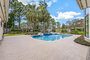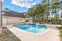Magnificence awaits, nestled among towering pines on The Forest’s most sought-after “Street of Dreams”, where mature trees, scenic trails, & nature abound. Inside, an elegant entry with marble floors, a modern chandelier, & a floating curved staircase is flanked by the formal dining room & private office with wood-look Lux Vinyl plank floors & LED lighting. The family room boasts a stunning fireplace & a wall of windows overlooking the sparkling pool with waterfall features, hot tub, meandering paths, & lush outdoor living. A custom-designed kitchen stuns with honed granite counters, KitchenAid appliances, under-mount lighting, a butler's pantry, & an oversized laundry room. The primary suite offers a remodeled bath with dual tower vanities, Brizo fixtures, & a zero-entry shower. Upstairs, find 4 bedrooms, 2 baths, & a game room. Note the recent roof & HVAC, whole-house generator, sprinkler system, gated drive, & 2-car garage with a 27x16 A/C'd storage space above. Never flooded!